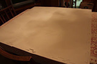 I'm going to use the back side which is white. I don't want to take any chances that the colors will run. The alphabet mats have colors on both sides. I do believe I'm going to pick up another set so they will cover the whole length of Mom's dinning room table. Compete coverage. I'm getting way too old..errrrrrr......pissy to want to cut fabric and dry lace work and sweaters on the floor.